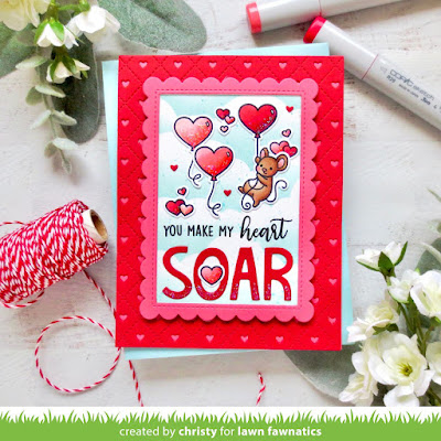 Hey friends, welcome to Lawn Fawnatics #165! This round we've got Lots of Heart! Who doesn't love that? For my card, I featured the sweet little mouse from the new All My Heart stamp set, combining it with the heart balloon from the Scent with Love Add-on. I colored all the images with Copic markers and trimmed them out with the matching dies.